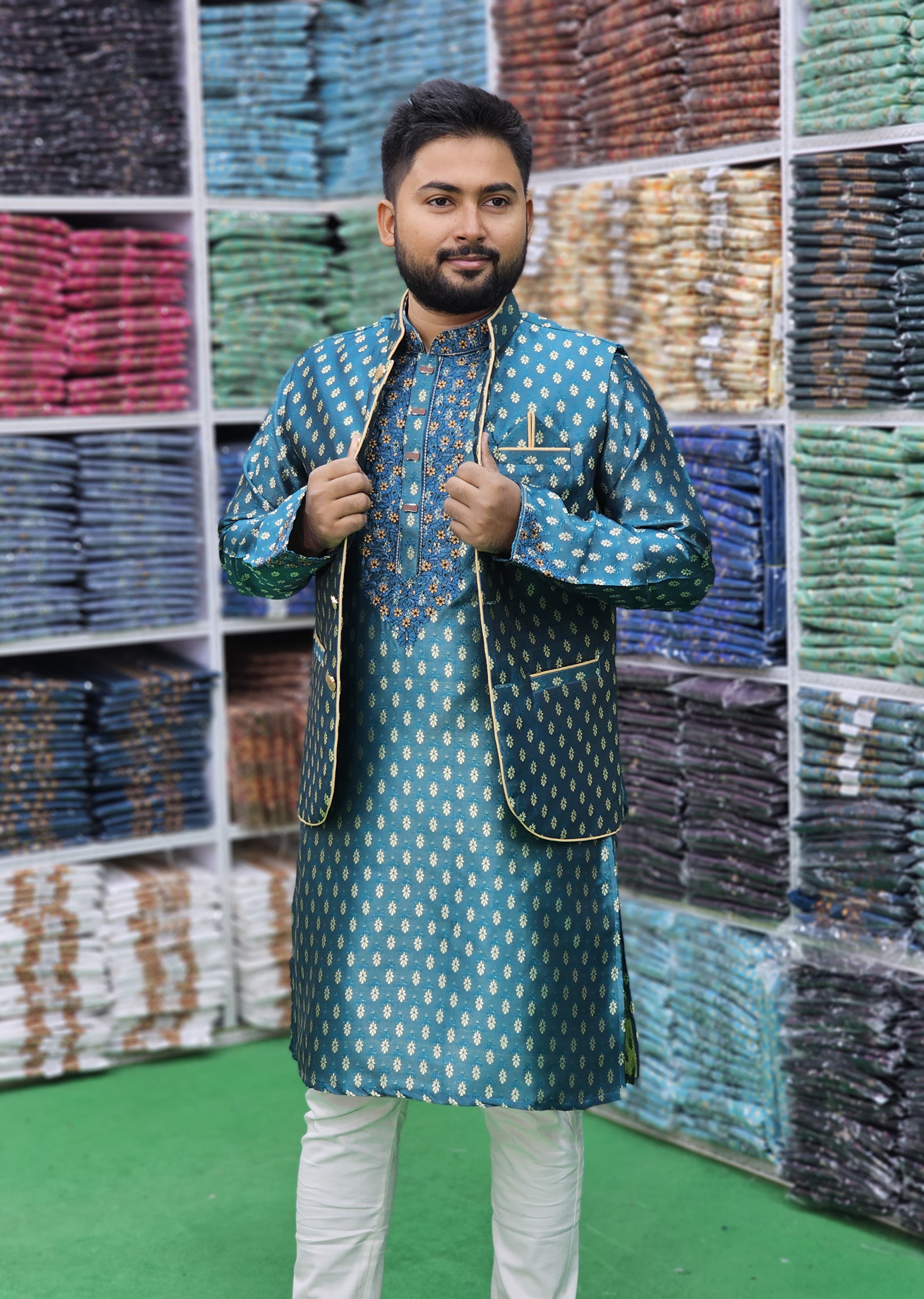 শীতের আরামদায়ক সফট কাতান কাপড়ে ম্যাচিং-কটি পাঞ্জাবী।
